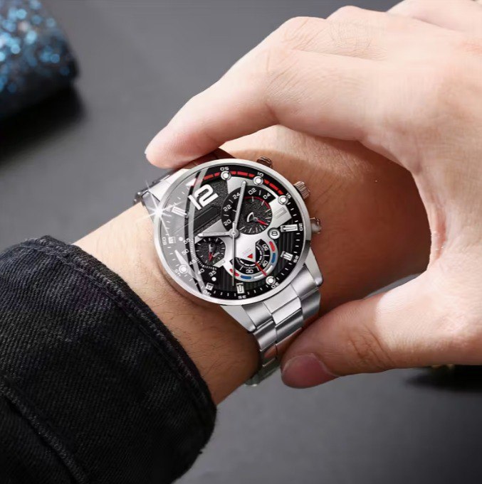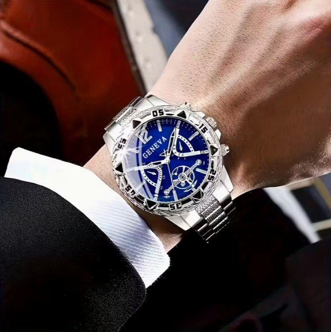 The Orbit Design tariff brings together three different watch models, each with its own character and style. The black-and-gold version, the silver watch with a dark dial, and the silver model with a deep blue dial form a set suited for various outfits, from business to more expressive looks. All watches feature a pointer display with detailed indicators that give the design a technical feel. The quartz movement supports steady hand motion and clear time reading throughout the day. This tariff works well for those who prefer having several watch options inside one coordinated collection.